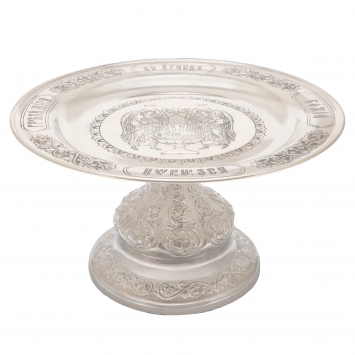 Дискос с поддискосником ручная гравировка, чеканка / ф240мм-потир 0,5л"№3" / серебро (УИН)