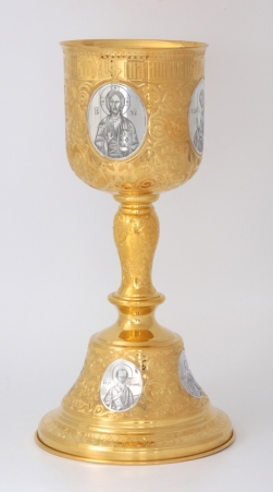 Дискос с поддискосником ручная гравировка, чеканка с пророками / ф240мм-конус потира 0,5л / золочение / серебро (УИН)