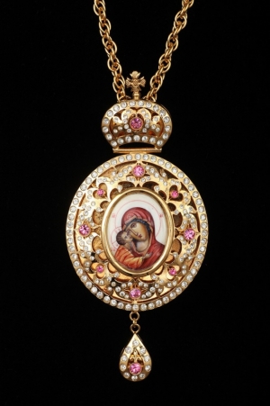 Панагия №193 / Фианиты, финифть / золочение / серебро Казанская БМ (УИН)