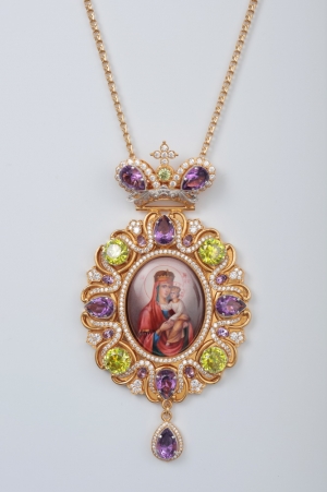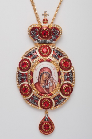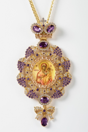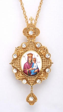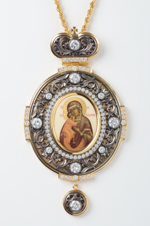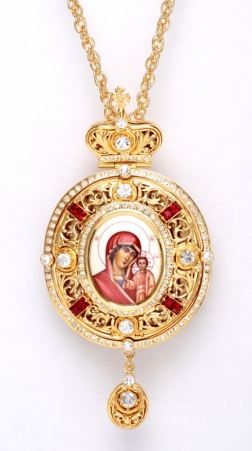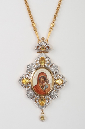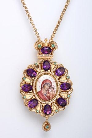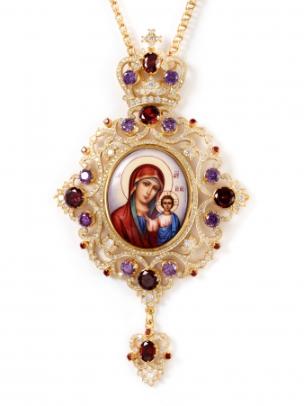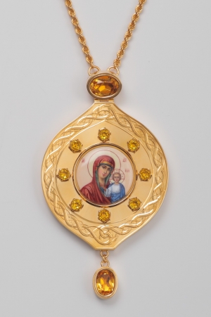 Панагия №193 / Фианиты, финифть / золочение / серебро Казанская БМ (УИН)