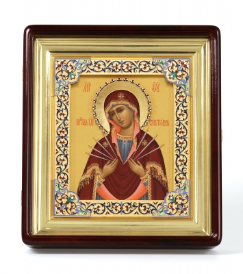 Икона живописная в серебряном окладе 30*40 / киот / Семистрельная БМ (УИН)