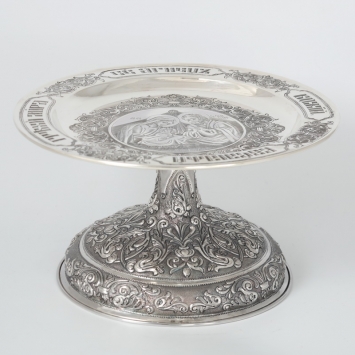 Дискос с поддискосником ручная гравировка, чеканка / ф240мм-потир 0,75л"№4" / серебро (УИН)
