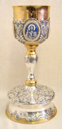 Потир 1,0л 4-финифти, филигрань, эмаль, роспись / поддон старого образца / золочение / серебряный стакан (УИН)